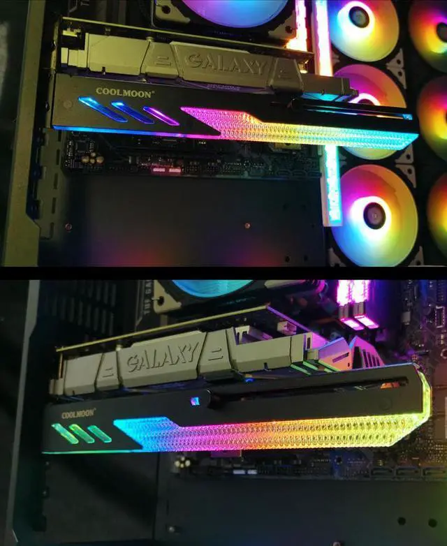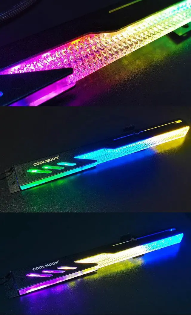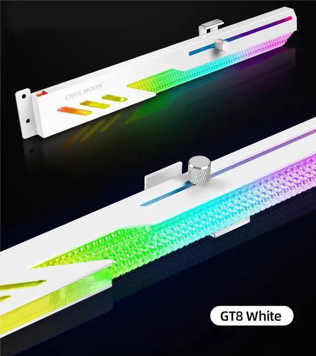 The COOLMOON GT8's addressable RGB synchronous GPU bracket has ARGB light effect. (It should be used with the motherboard supporting 5V ARGB. )