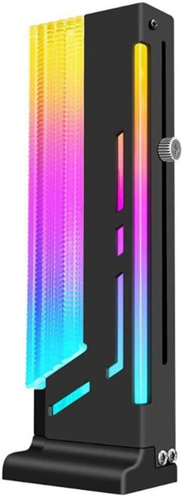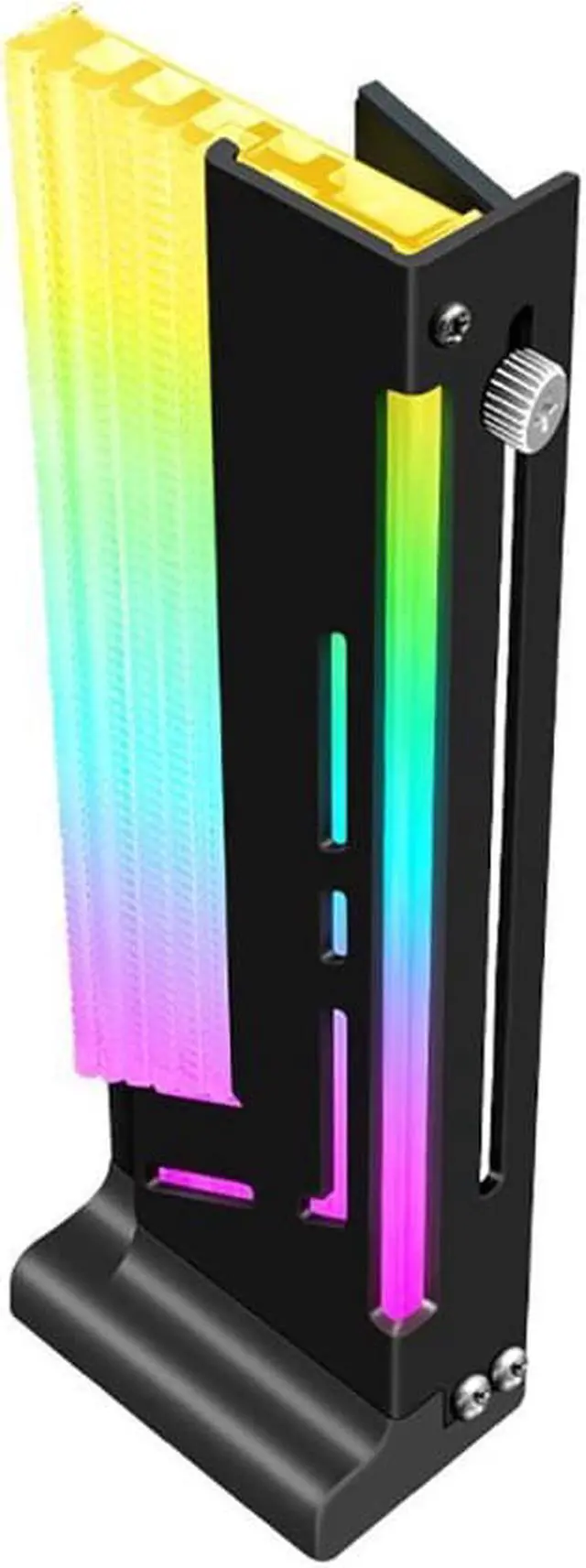 Sliding and adjustable RGB graphics card bracket: The bracket can slide up and down, and can be tightened manually. Therefore, it can also provide a flexible support solution for your graphics card, compatible with various chassis board design, and meet the different needs of users