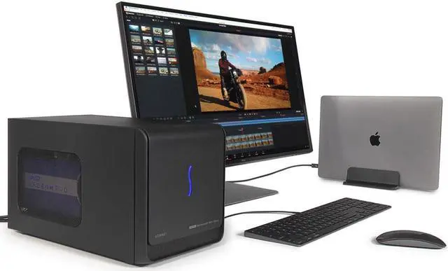 Boosts Graphics Performance - Connects a high-performance GPU card to your computer with Thunderbolt 3 ports. Mac & Windows Compatible. *M1 Macs are NOT compatible with GPUs. Not Compatible with Thunderbolt 2 or USB-C ports. (GPU Card not Included) | Cuts Application Task Times - Enables GPU acceleration to significantly improve editing, rendering, color grading, animation, and special effects performance. | 750W Power Supply - Support the power requirements of the latest compatible GPU cards; future-proof design handles higher power requirements of cards to come. | Supports Many of the Latest GPU Cards - Includes AMD Radeon VII, RX, RX Vega, Pro W and Pro WX models; and NVIDIA GeForce RTX series, TITAN, and Quadro models.