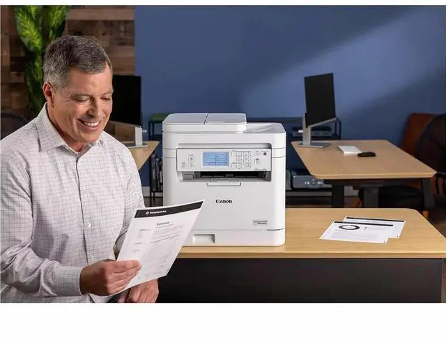 This monochrome, All-in-One laser printer, designed for small and home offices, produces exceptional quality outputs at speeds of up to 35 pages per minute, with your first letter-size print in approximately 4.9 seconds, and can print wirelessly.Fast PrintingPrint up to 35 pages per minute with first print out time of approx. 4.9 seconds.Generous Paper CapacityThe printer holds up to 250 sheets of plain, letter-sized paper and the high-capacity toner option can provide increased printed page volumes.Auto 2-Sided PrintingAutomatically prints on both sides of a sheet to help save paper and resources.Mobile ConnectivityPrint on-the-go with the Canon Print app, Apple AirPrint and Mopria Print Service.