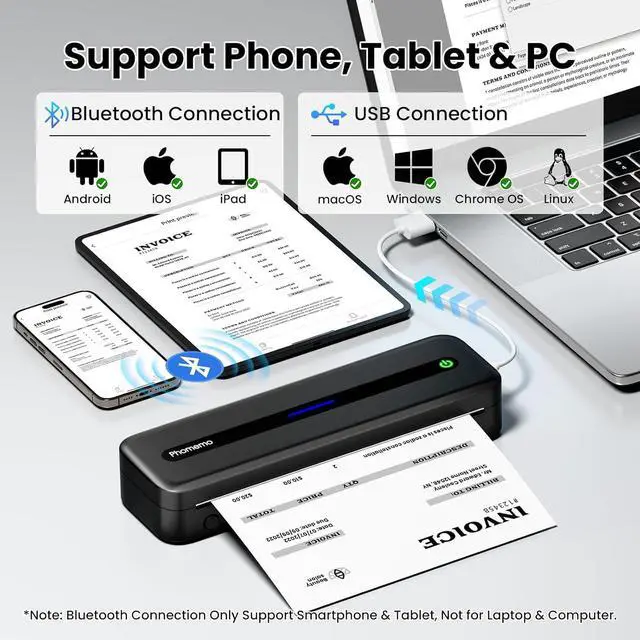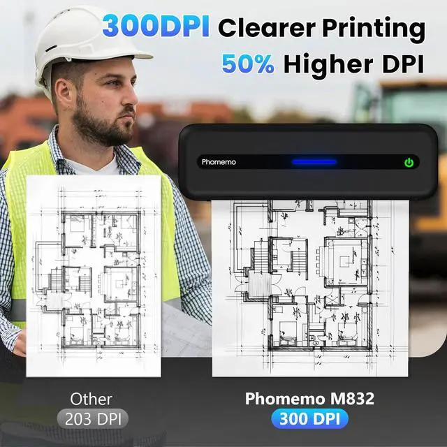 The video showcases the product in use.The video guides you through product setup.The video compares multiple products.The video shows the product being unpacked. Merchant video If you're looking for a portable printers wireless for travel or mobile printer for vehicles, Phomemo M832 compact inkless printer is your ideal choice. Weighs only 1.5lb and small size, M832 portable thermal printer can quick printing contract, invoice, bills of lading, picture, web and more.