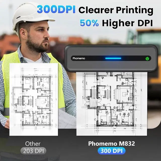 Cost-Effective, Inkless Printing: M832 portable printer adopt advanced thermal technology, no need for costly ink, toner or ribbons, no clogging and no cleaning problems! Chooes thermal portable printer, save more cost, more efficient