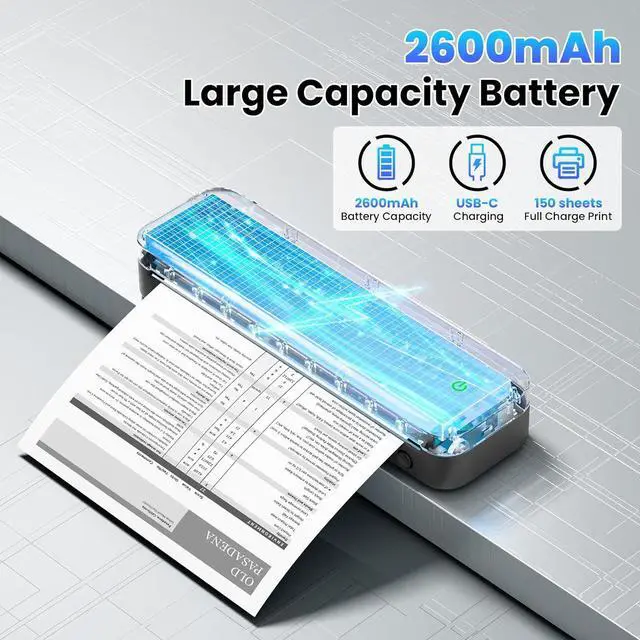 Portable Printers Wireless for Travel with Paper Bin: Built in 2600mAh rechargeable battery, Phomemo M832 portable printer weighs only 1.5lb and is the size of a pencil case, the wireless portable printer easily fits in your backpack or briefcase! It is mobile printers for vehicles, suitable for car, truck, business trip, small office, university, home use when you need to print something quickly. This inkless portable printer has a built-in roll paper bin, no need to carry printing paper separately