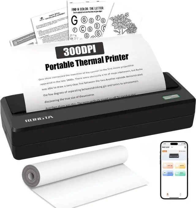Portable Printer Wireless, Bluetooth Thermal Printer for Travel, 300DPI Inkless Printer Support 8.5" X 11" US Letter and Legal, A4 & A5 Thermal Paper, Compatible with Android iOS Phone and Laptops