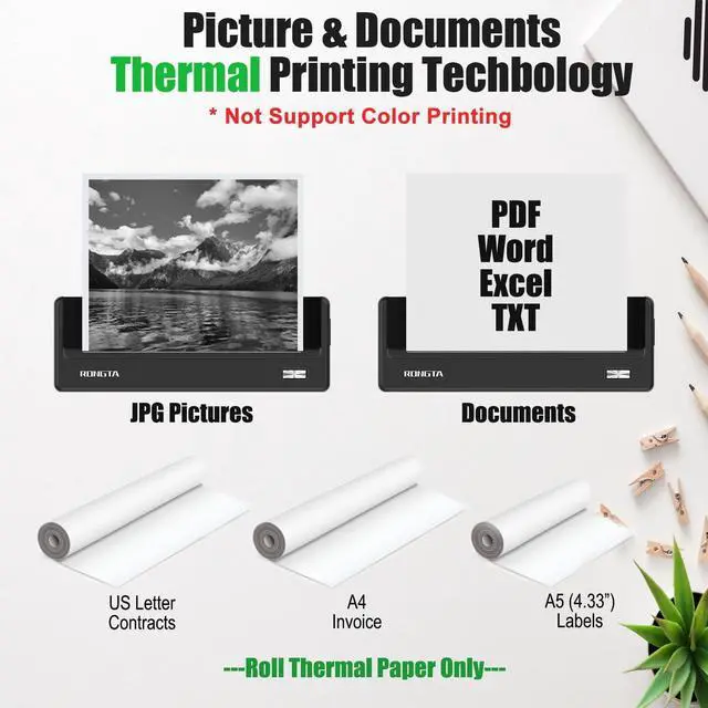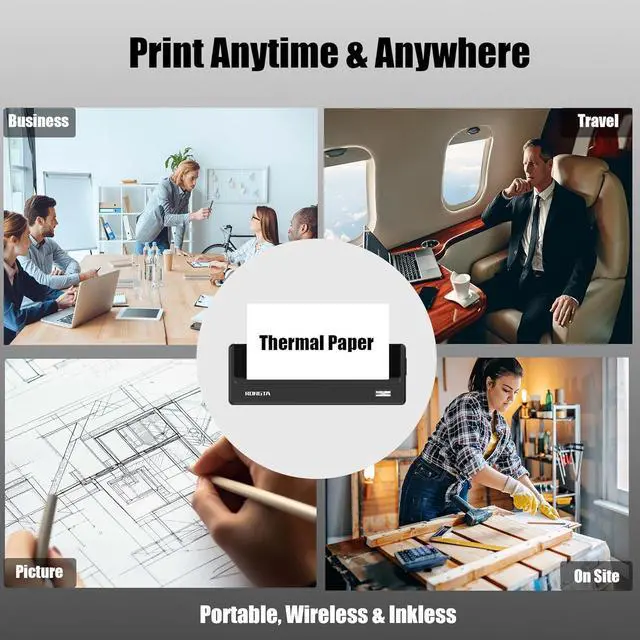 Portable Printer for Travel Wireless, Bluetooth Thermal Printer, 300DPI Inkless Printer Support 8.5" X 11" US Letter & Legal, A4 & A5 Thermal Paper, Android iOS Phone & Laptop