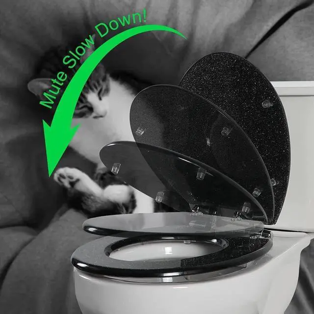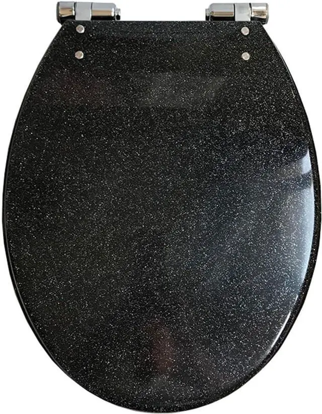 Sparkly Resin Toilet Seat, Round Soft Close Toilet Seat, Quick Release, Thicken Resin Lid with Glitter, Universal Fit for Elongated & D-Shaped Toilets, Gold/Pink(Silver) (Black)