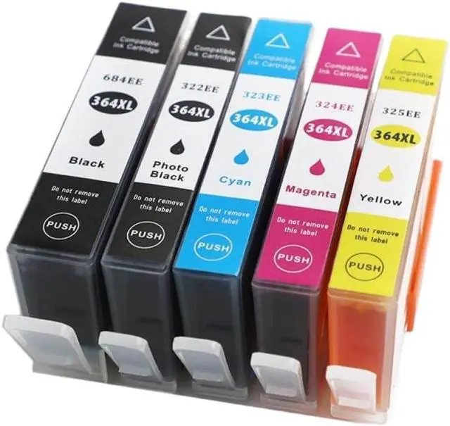 The 364 ink cartridge set is a versatile option for a wide array of printers, ensuring your printing needs are met with reliability and consistency.The set includes one Photo Black, one Black, one Cyan, one Magenta, and one Yellow cartridge, each with a generous volume to meet your printing demands.With the included chips, you can expect compatibility and functionality with your compatible printers.
