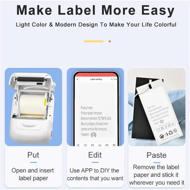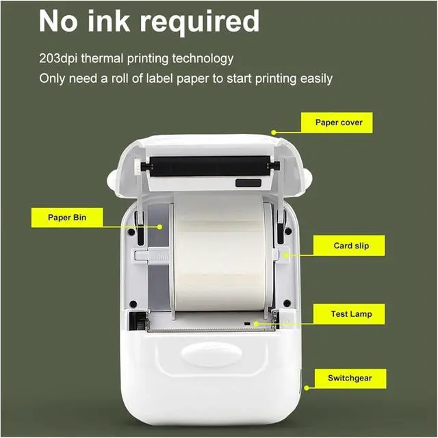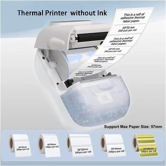 Thermal Printer Portable Label Maker Wireless Thermal Printer for Phone Office Home Barcode Clothing Jewelry Mini Printer No Ink Print Easy to Use(White)