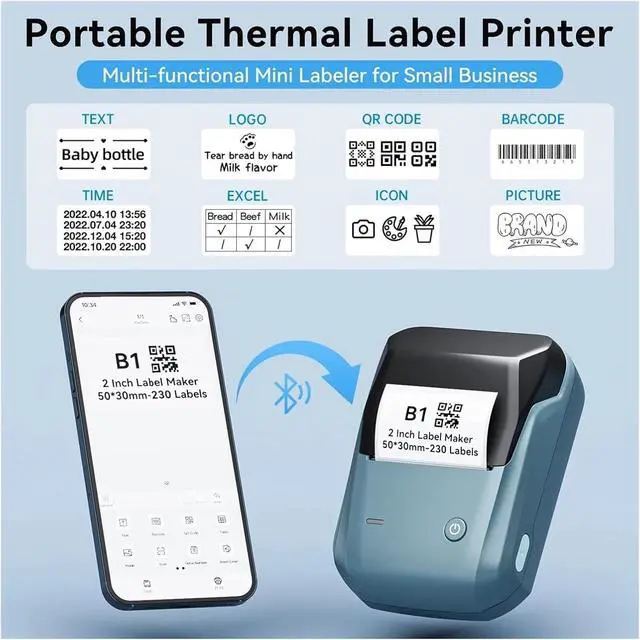 Thermal Printer Portable Thermal Label Printer Mini Self-Adhesive Sticker Maker Mobile Price Wireless Bluetooth Pocket Label Printer Easy to Use