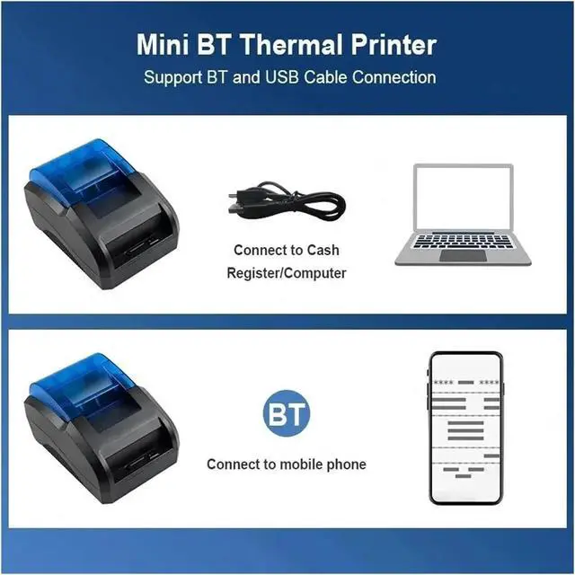 Thermal Printer 58mm Desktop Thermal Portable Printer Receipt Bill POS 58mm Barcode Mini Printer Bluetooth Wireless Easy to Use
