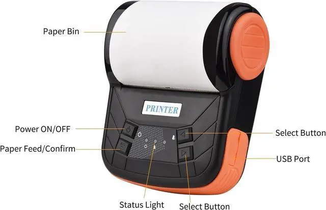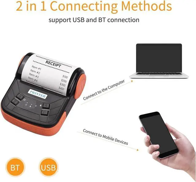 Thermal Printer 80mm Portable Receipt Printer Wireless BT Thermal Borcode Printer Mobile Bill Printer ESC/POS Print Command for Small Business Easy to Use
