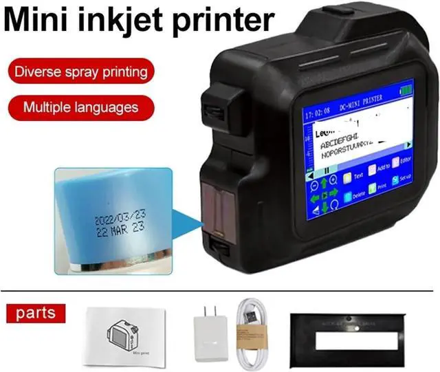 Mini Handheld Inkjet Printer with Nozzle QR Code Production Date Mark Encoder Non Encrypted Portable(Printer with 2 Ink)