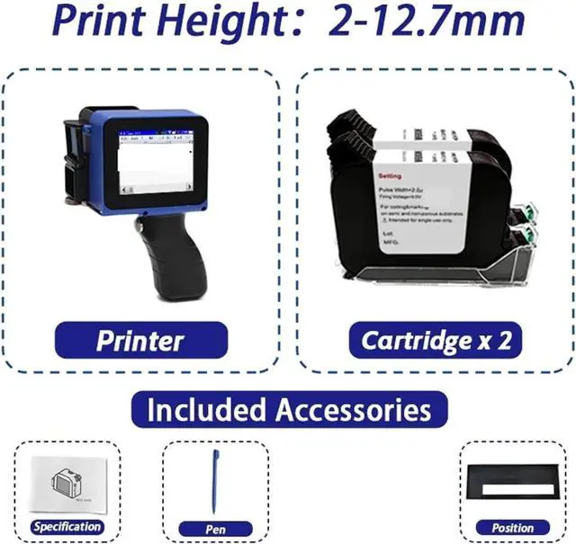 E12 12.7MM Detachable Printer Portable Handheld Inkjet Printer to Code Food Production Date Batch Number Dynamic Data Wide Printing Material(with 2 Ink)
