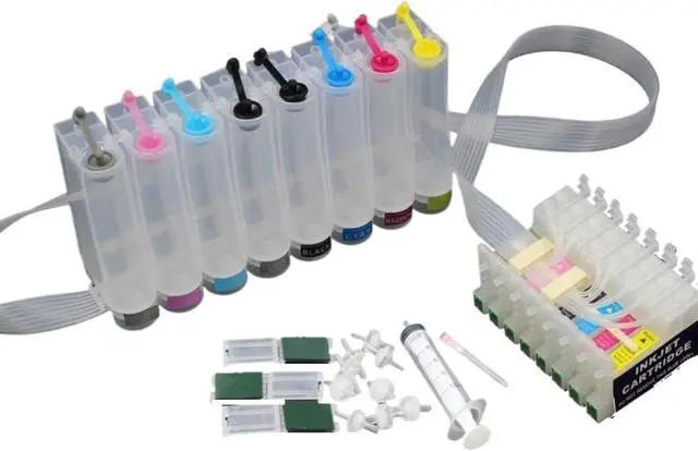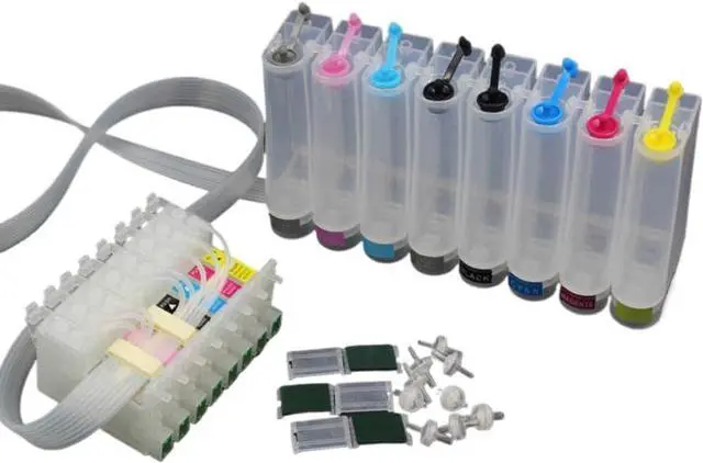 This CISS (Continuous Ink Supply System) is compatible with the Stylus Photo R2400 printer. It provides a complete replacement for the listed cartridge numbers.