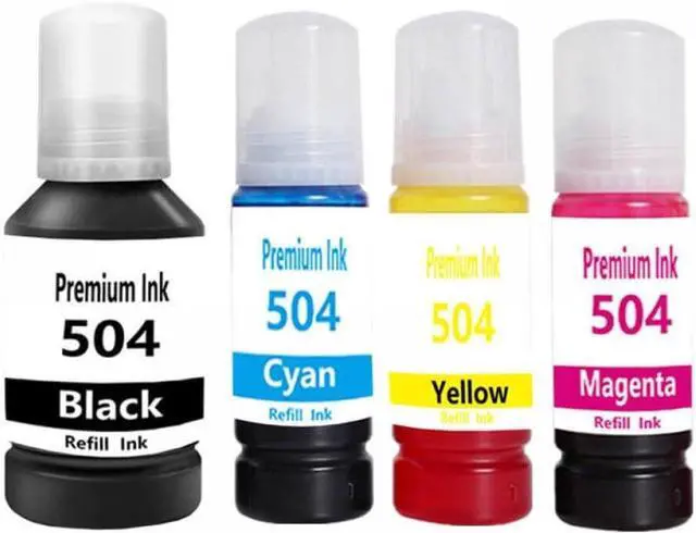 4PCS T504 504 Refill Dye Ink for Eco Tank L4150 L4160 L4260 L6161 L6171 L6270 L14150 Printer is designed to deliver vibrant colors and smooth printing results.This refill ink is specifically formulated for compatibility with the mentioned Eco Tank printer models, ensuring performance and ease of use.Each cartridge offers a reliable solution for your printing needs, making it suitable for both everyday documents and images.Enjoy hassle-free refills and maintain the quality of your prints with this dye ink set.