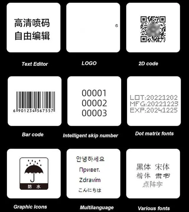3. Multiple Use: The handheld inkjet printer has a compact body, convenient HD coding, colour display, no need to download an app to edit text on the touch screen, upgraded HD touch screen interface and diverse content fonts.