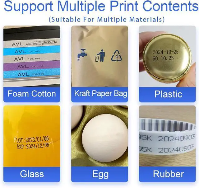 Printing Content: Chinese English Characters, Dynamic QR Code, Barcode, Graphics, Serial Number, Date, Shift, Variable Database, etc.