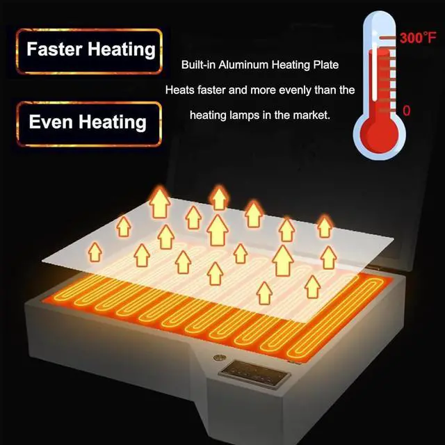 - The aluminum plate heats more evenly than other heating lamps in the market.