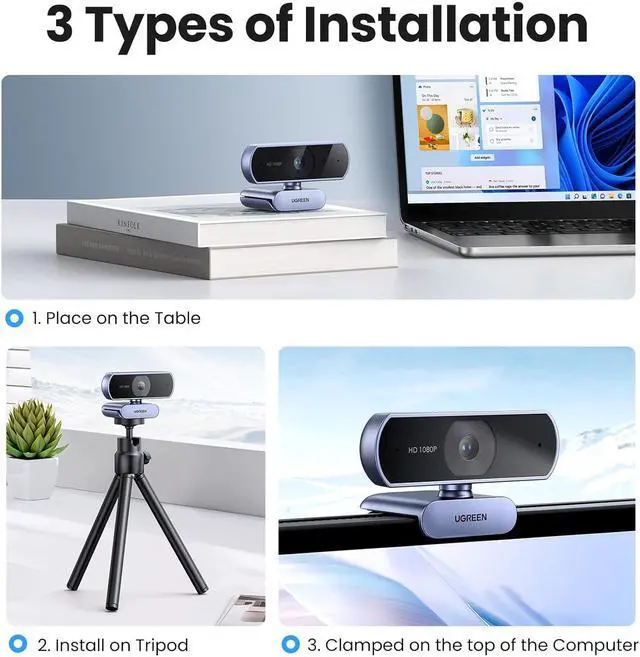 Plug-and-play & Wide Compatibility: With driver-free installation and plug-and-play functionality, you can easily place the webcam on any monitor, laptop, TV or tripod, making it a convenient option for anyone in need of a high-quality webcam. UGREEN pc webcam widely works with Windows 7/8/10 and above, Mac os 10.6, Linux, android and other systems, compatible with skype, youtube, facebook, zoom and more. Advanced technology, wide range of applications, and better understanding of your need