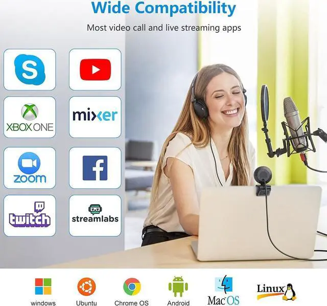 Easy to Use & Widely CompatibleWebcam with tripod is easy to install, with a flexible base and clips that can be adjusted to fit most desktop computers, laptop TVs, without any installation or software, plug, and play, and compatible with 2.0 / 3.0 USB interface. USB webcam supports most the web applications such as Facebook, Twitter, YouTube Facetime, Skype, it is also compatible with Windows, Mac OS, Chrome OS, Android, IOS, etc.
