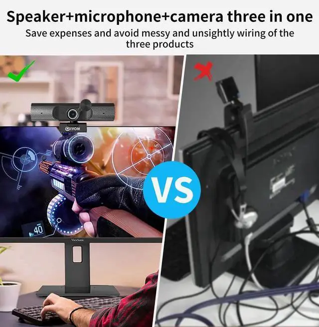 3 in 1 webcam: HD web camera & digital stereo mic & clear speakers,one is enough for Streaming/OBS/Gaming/FaceTime.