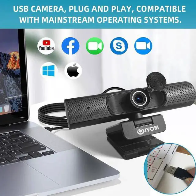 The PC webcam with a privacy cover : It ensures a secure digital web experience by safeguarding your privacy when the camera is not in use, preventing potential hackers from spying on you. The cover allows you to have control over when your video is displayed, giving you peace of mind and effectively protecting your privacy. With this feature, you can confidently navigate your digital life, knowing that your webcam is securely protected when not in active use.