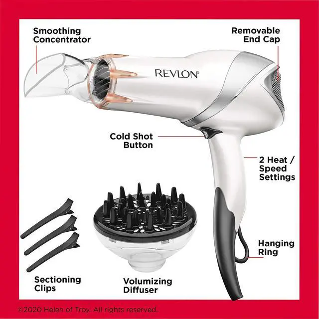 ALL HAIR TYPES: 1875 Watts for maximum drying power. 2 heat/ 2 speed settings for precise styling. And cold shot button releases cold air to lock in style.