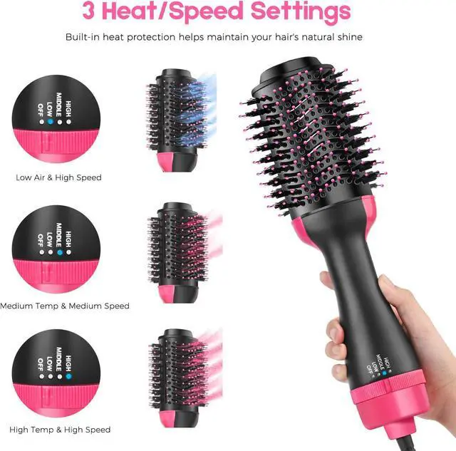 • MULTI-FUNCTION HAIR DRYER BRUSH - This hot air brush is a perfect combination of hair dryer and hair styler to help you dry and straighten and curl your hair at the same time. For all types of hair. Long, short, thick, damaged, colored, or extensions, can be made in different shapes.