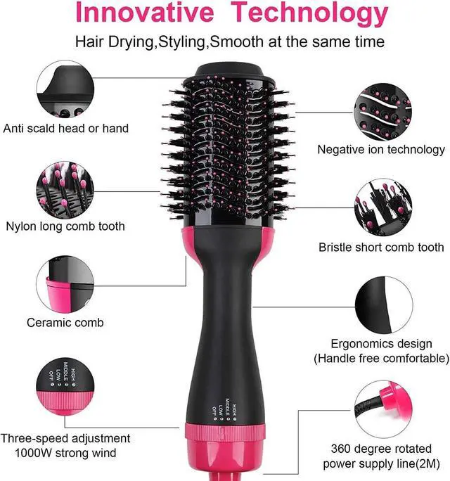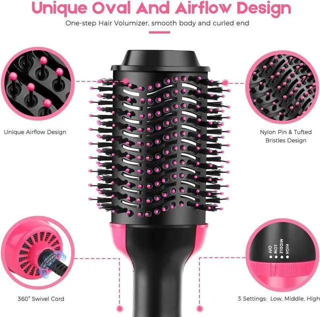 ERGONOMIC & SAFE GRIP HANDLE: The 360° rotatable wiree nsures high flexibility to move freely without the cord becoming tangled and damaged, great for using at home or traveling. The hot air brush has unique shape gently curved sides for smoothing and round edges for smooth volume and curled ends. The nylon pin & tufted bristles for easy detangle & better grip of your hair. For maximum comfort and ease of use during styling.