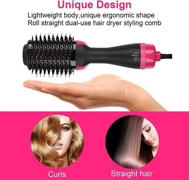MULTI-FUNCTION HAIR DRYER BRUSH: Professional 4 in1 hot air brush, perfect combination of dryer, curler, straightener and brush, 4-in-1 hot air brush dryer for blow-drying and hair styling, easily create volumes to your hair.