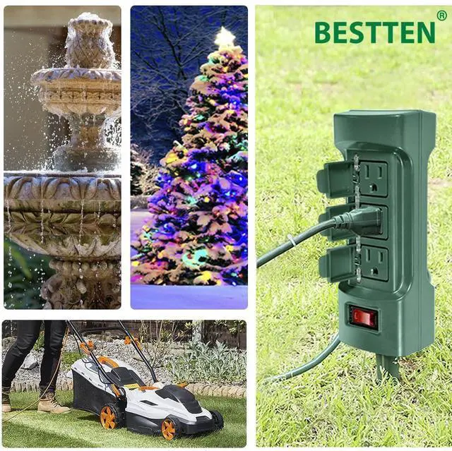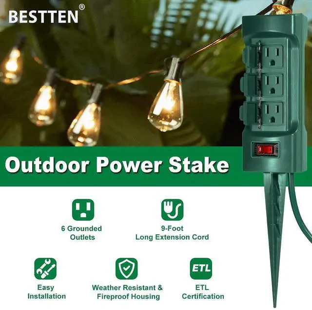 Sometimes you need a more convenient power source for outdoor use. The BESTTEN outdoor power stake provides a set of multiple plugs, a long flexible extension cord, and a convenient yard stake, which is great to power your holiday lights, party lighting, sound equipment, pool pump, water fountain and more outdoor appliances.