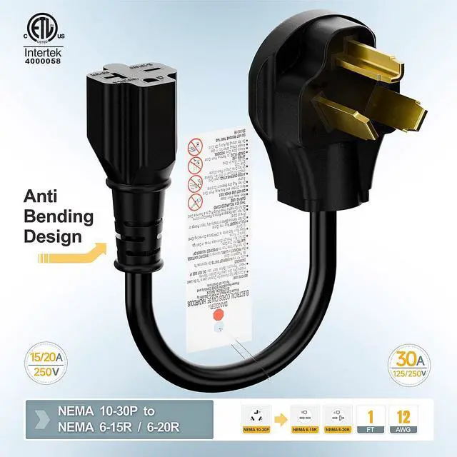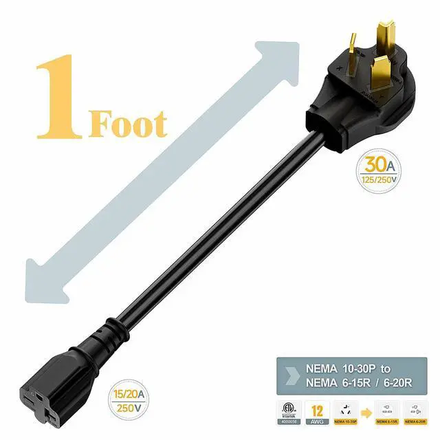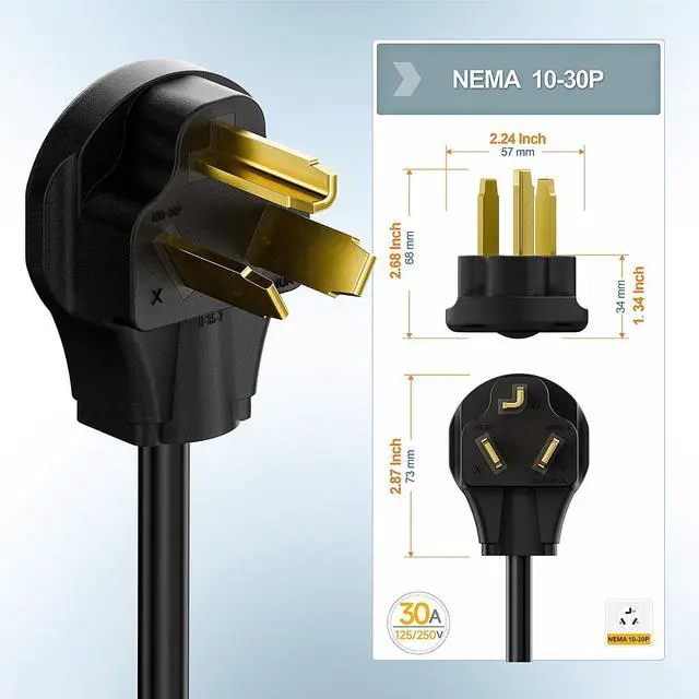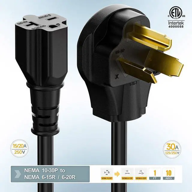 • 10-30P 3-Prong Male connect to your dryer wall socket, the 6-20R (T-Blade) female connect to your EV charger Which has a 6-20P male power cable