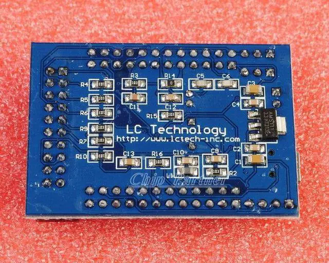 1. chip board STM32F103C8T6 2. board JTAG interface and reset button 3. the onboard crystal 32.768KHZ and 8MHZ 4. with 5V to 3.3V chip AMS1117- 3.3 5. with a group of UART serial interfaces 6. all I/O all the leads, and mark the I/O name 7. on-board Mini USB interface, you can give the board power supply and USB communication 8. board size 54 (mm) x 42 (mm)