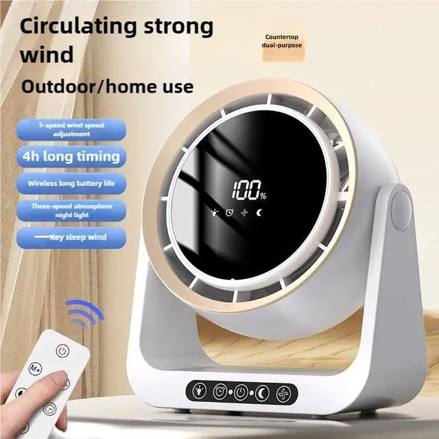 • USB Cycle Charging Digital Display Desktop Turbo Small Fan Black Leafless Technology for Home Household Outdoor Hotel Plastic