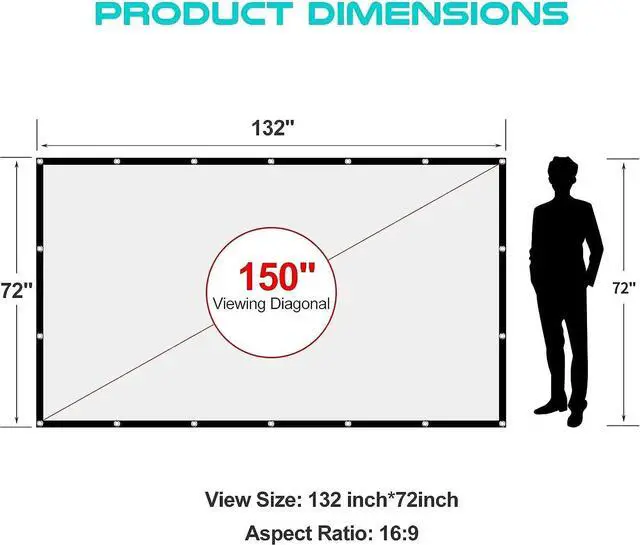 Movie Screen Design: The Unique projector screen is 150 inches in 16:9 Screen format, 160° but over viewing angle, Provides a 132" 73"Viewing area. Suitable for manual projector screens
