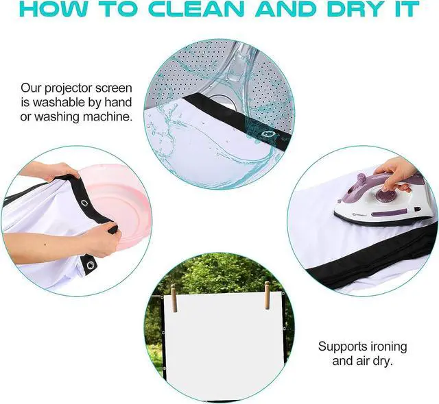 Movie Screen Fabric 100%: Used white soft touch, projector screen are thickened and smooth, no crease projector screen nontransparent, providing brighter colors, Strictly controlling the quality, White screen for projector Support outdoor projector screen.