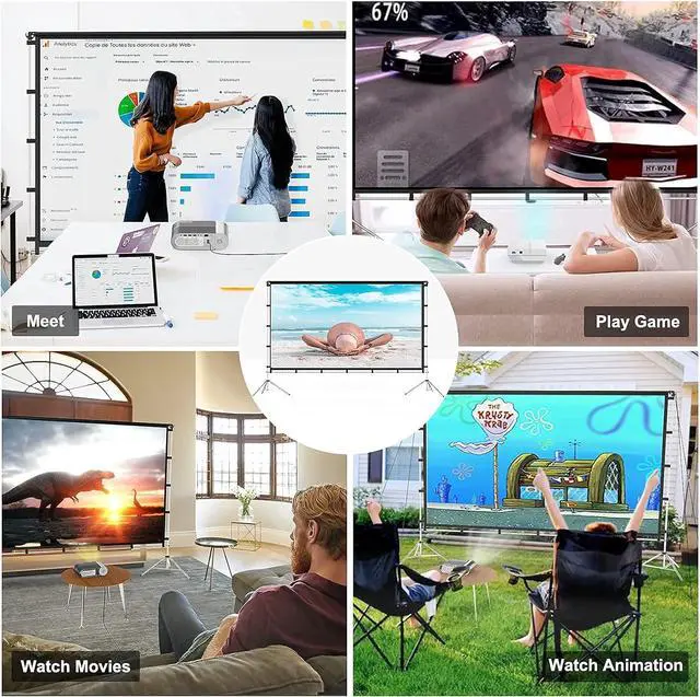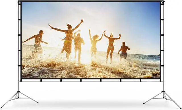 Lightweight and Durable Material- Vamvo portable movie screen with a very textured aluminum stand that is smooth and comfortable to touch. The stand is not only advanced and beautiful but also lightweight and durable. The rust-free aluminum material and the movie projector screen pairing with 9 grounding spikes and ropes make it to sturdy enough to be used and resist bad weather in outdoor.