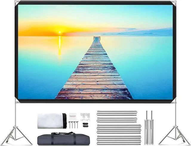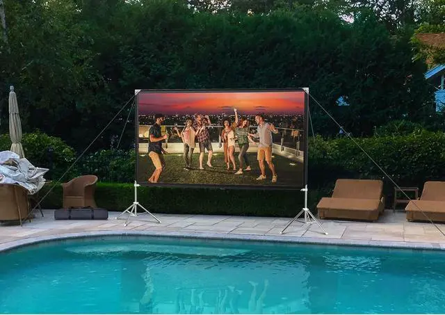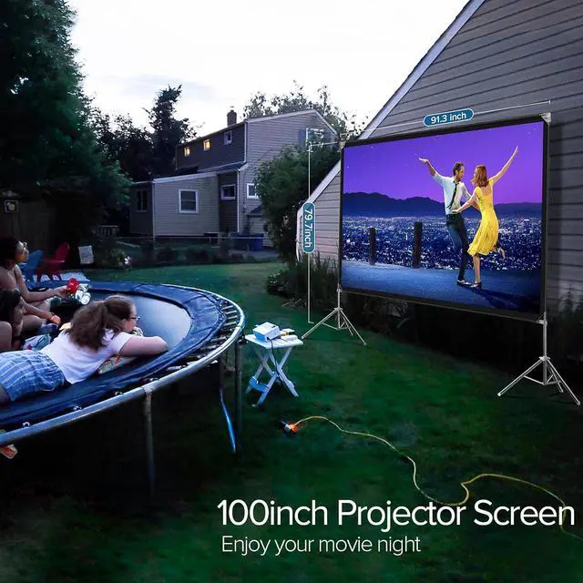 Portable for Most Scenario: Velcolt projector screen and stand weighs 10.98 lbs with a carrying bag included. It can be packed up easily in your car trunks and prepared for virtually any projection scenario, be it a movie night with friends and family beside the pool, in the deck, on the lawn, on a camping trip or in the office.