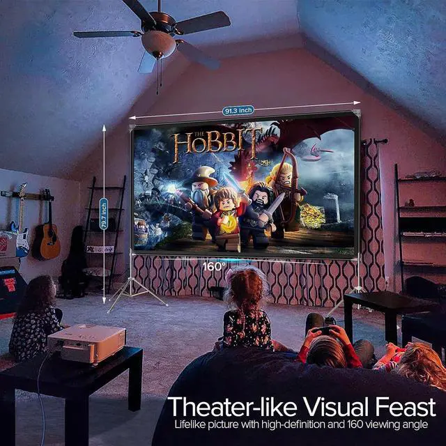 Theater-like Visual Feast: Velcolt projector screen and stand delivers crisp, detailed images and enriched colors with 1.6 gain, Active 3D, 4K Ultra HD. 160-degree wide viewing range provides great coverage, while standard 16:9 aspect ratio prevents unfilled screen space or overflowing.