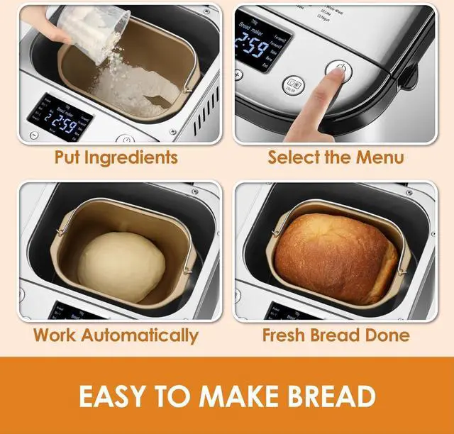 [Easy to Operate & Friendly For NEWBIES & PROS] Simply add ingredients (according to the recipes we provided) and press the START button once. The bread maker machine automatically mixes, kneads ingredients by kneading paddle, rises and bakes. You also can create yourown menu using the dough and baking menu.