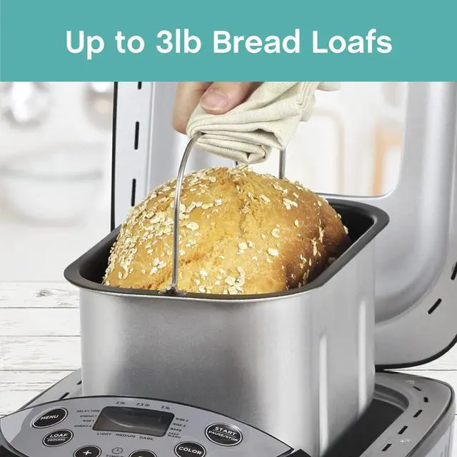 Delayed start cycle is programmable for up to 13 hours; set it in the morning and come home to the scent of freshly baked bread.