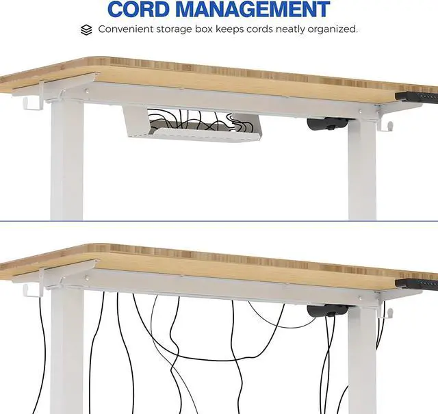 Built-In Cord Management: Integrated storage box makes it easy to organize cords so they stay neat and tidy. Also outfitted with 2 hooks for hanging headphones, bags, or other essentials.