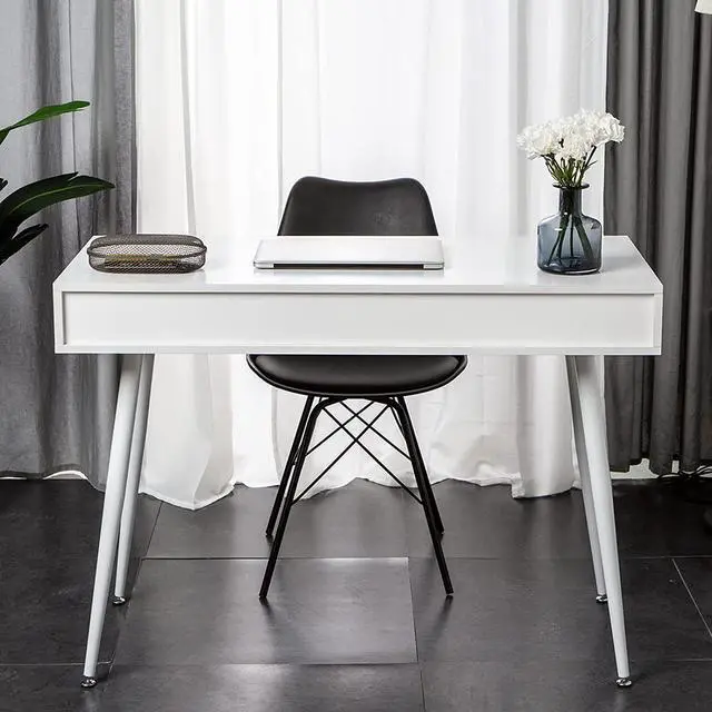 Multipurpose White Desk: 1. Large work surface of the white desk provides ample desktop space for daily life.