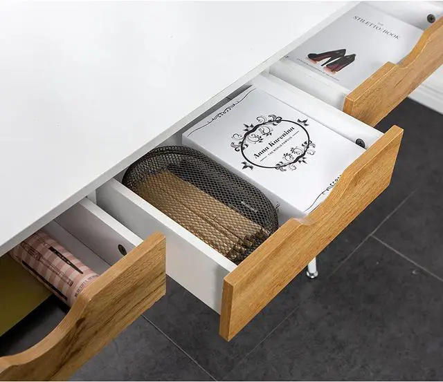 Desk with Drawers: The desk with drawers can store daily supplies such as your rings, jewelry, pens, keys etc., which make your desk clean and tidy.