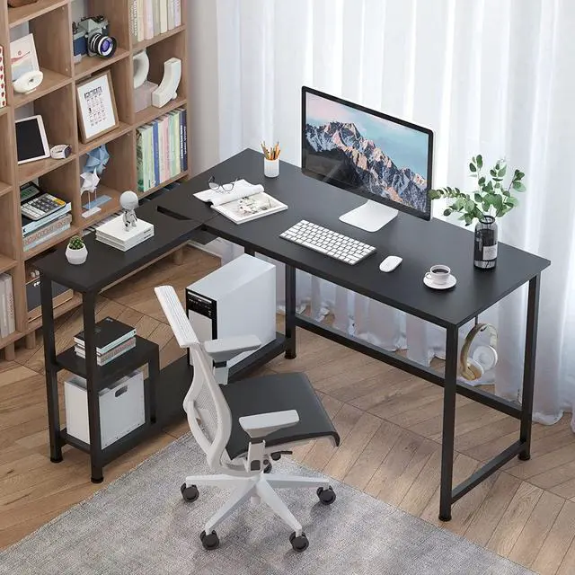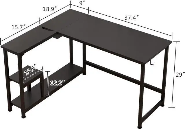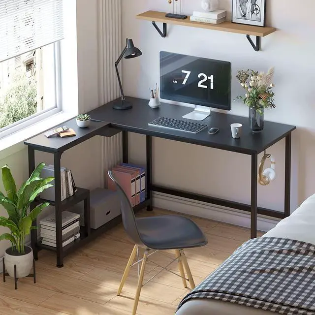 Reversible L-shaped deskThis small corner desk's shelves can be placed on your left or right following personal habits, suitable for most working scenes or your home office and allow you effectively take the advantage of your room even in a small space.