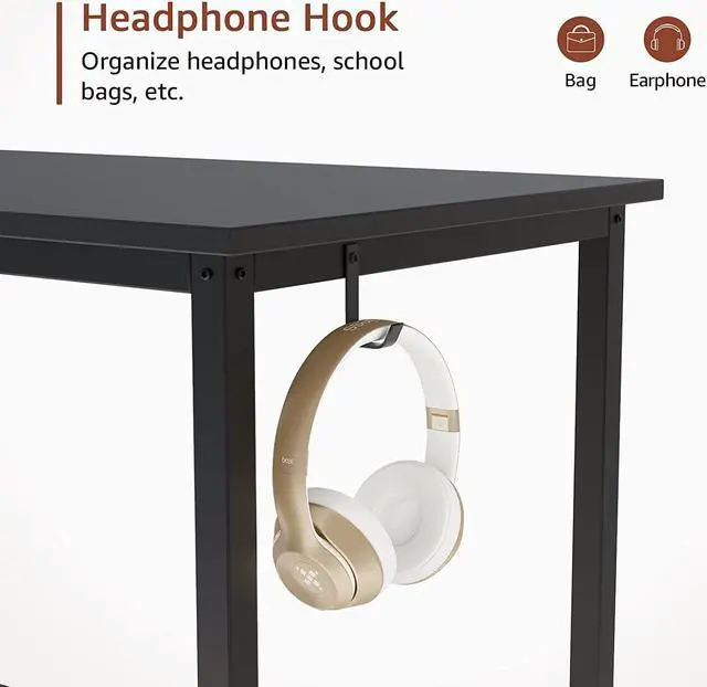 Sturdy & DurableUsing steel frame support and particleboard, this computer desk is stable and durable, with a top bearing capacity of 200 lbs and each shelf can hold 20 lbs.