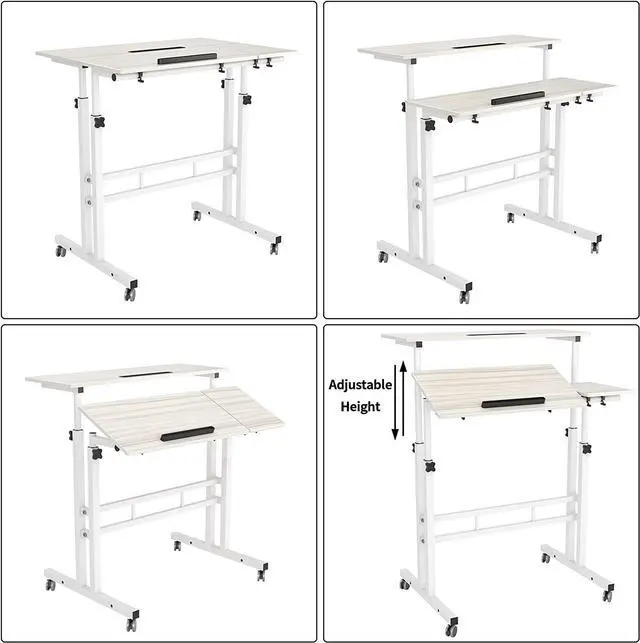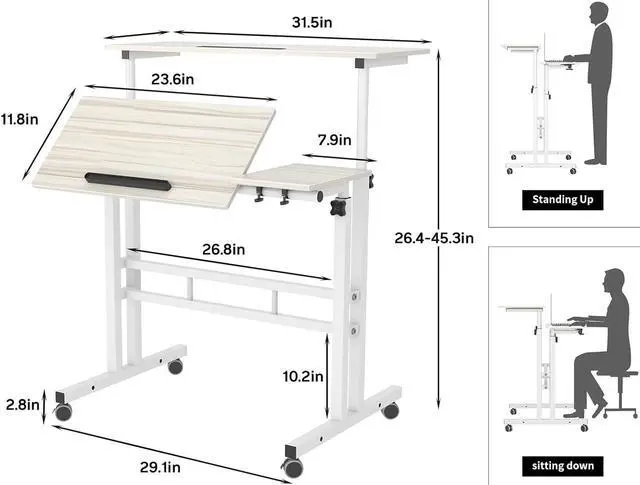 Adjustable Computer Desk: Two desktops of the standing desk are adjustable in different or same heights as per your needs. Also an independent mouse pad of the laptop desk is tiltable. You can work on this laptop desk either standing or sitting.