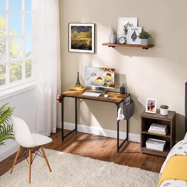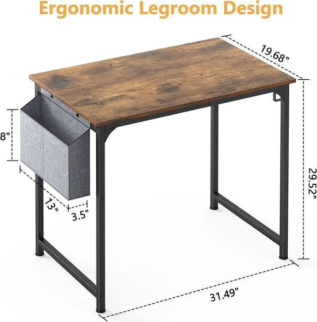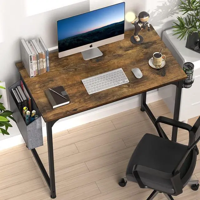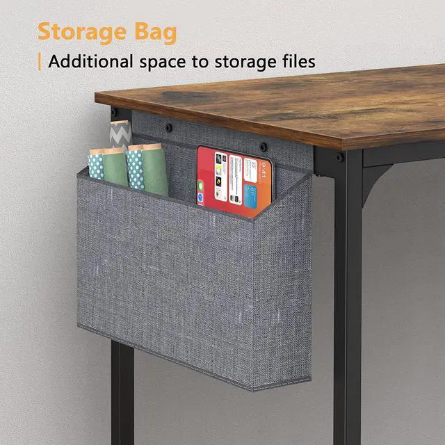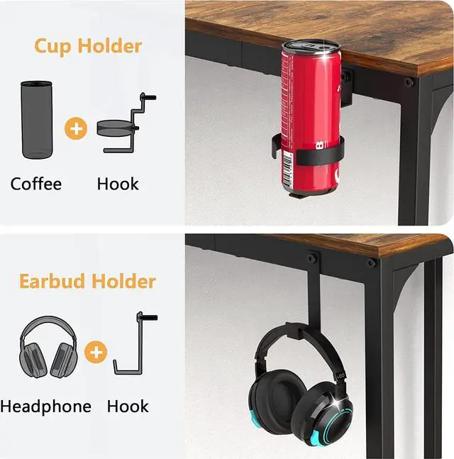 [SPACE-SAVING]: This computer desk is equipped with storage bag, headphone hook, and cup holder. You can store your books, notebooks, pens, etc. Headphones and water cup can also be kept within reach. These designs keep the desktop in a neat and tidy condition.