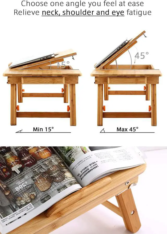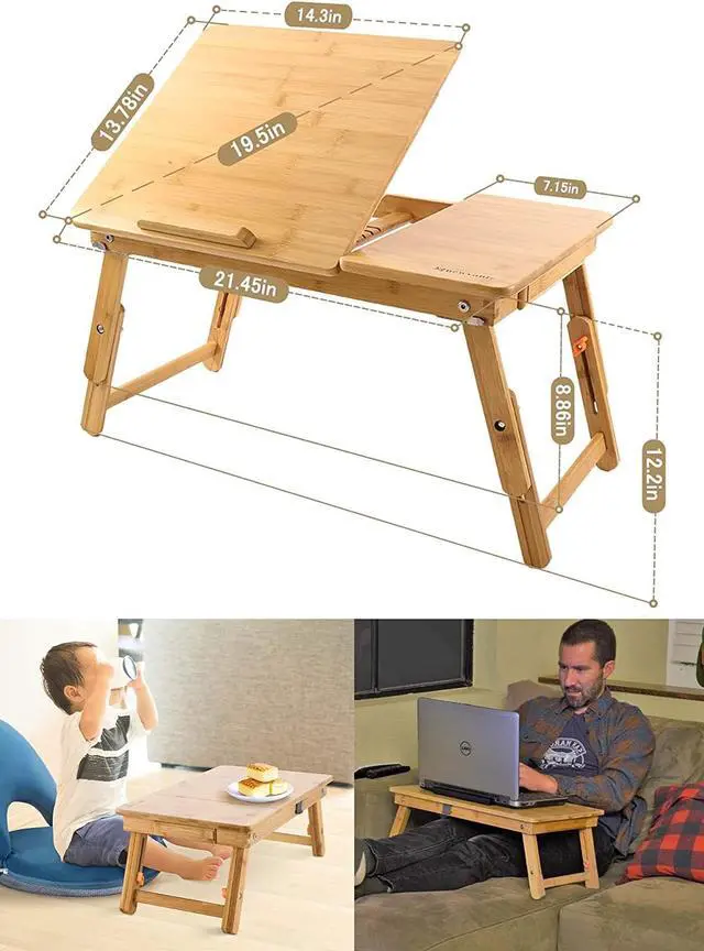 Multi-use desk: work as a laptop desk, but also as a TV Dinner Tray, bed serving desk for patients/kids, Standing Desk for office workers, Book Tray of readers, Writing Desk for kids, Tablet Holder ( 21.5 Lx 14.1W x 13.8H inches)