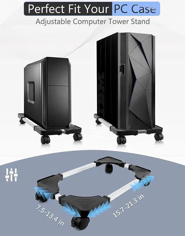 Perfect Fit Your PCThe computer tower stand is designed to support and protect the computer host for ease of use. The adjustable size fits most computer cases on the market. The PC stand also provides additional surface clearance for better ventilation and cooling of the chassis with the power supply installed at the bottom. Protect your computer from wear and tear with a PC stand.